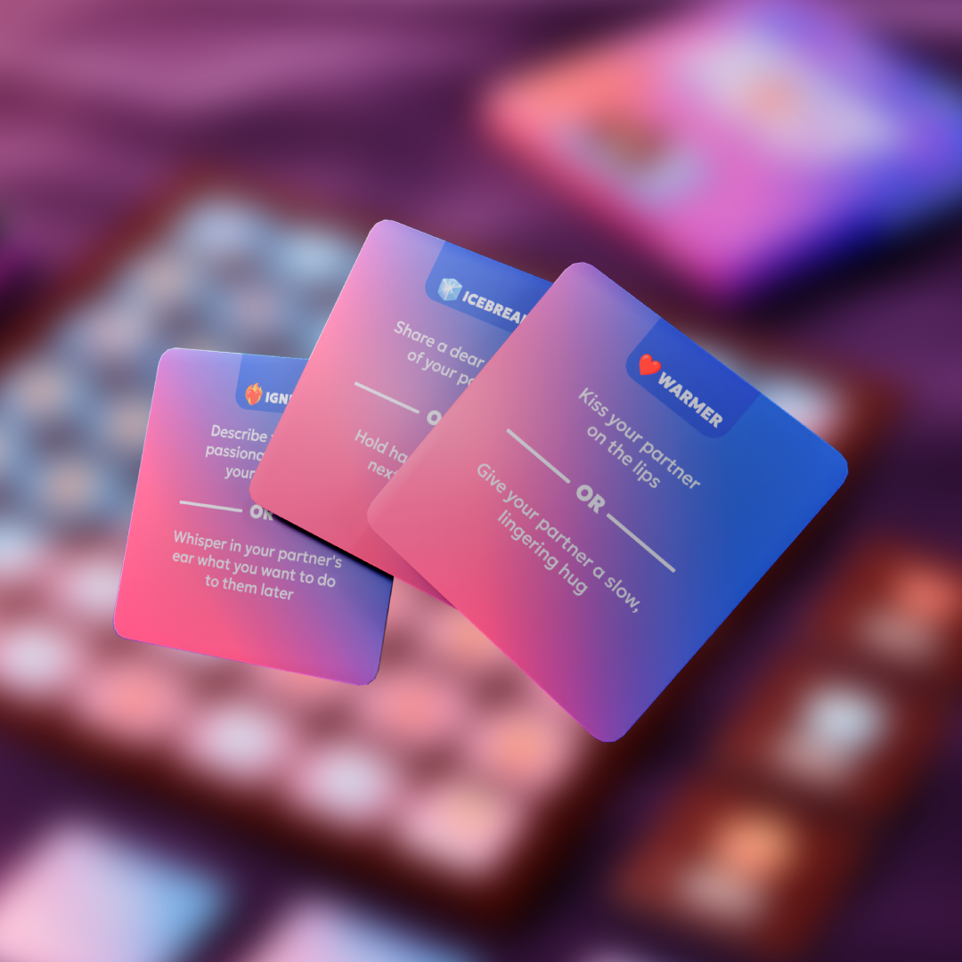 Karty sú rozdelené na 3 kategórie - icebreakers, warmers a igniters. Každá karta obsahuje 2 výzvy, z ktorých si musíte jednu vybrať.